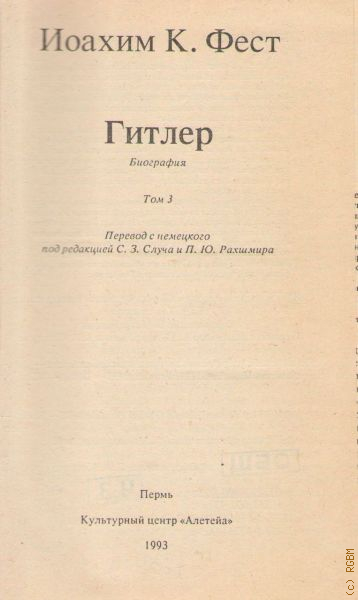 Фест И., . Гитлер Т. 3 — 1993 (XX век. Фашизм)