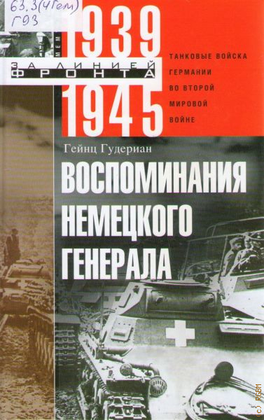 Гудериан Х. В., Воспоминания немецкого генерала. танковые войска Германии во Второй мировой войне, 1939-1945 — 2013 (За линией фронта. Мемуары)