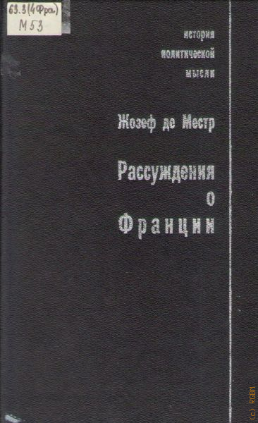 Местр Ж. М., Рассуждения о Франции — 1997 (История политической мысли)