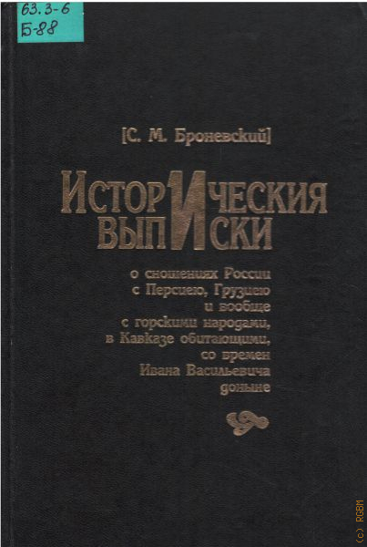 Броневский С.М., Исторические выписки о сношениях России с Персиею, Грузиею и вообще с горскими народами, в Кавказе обитающими, со времен Ивана Васильевича доныне — 1996 (Архив Российского востоковедения)