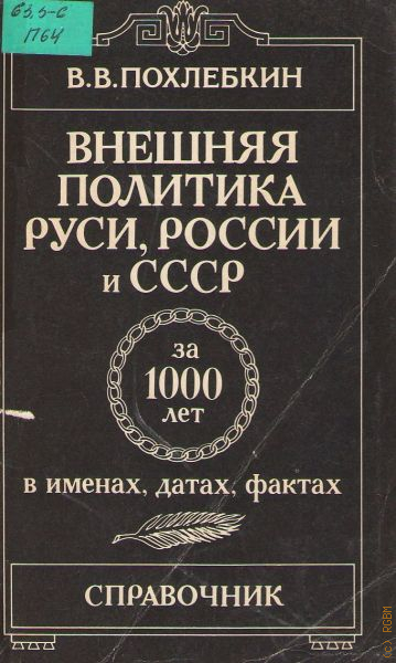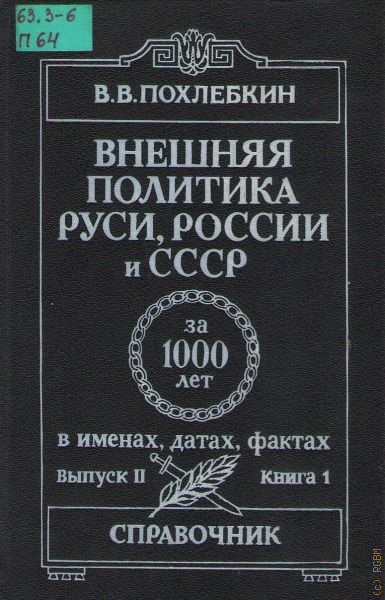 Похлебкин В.В., Внешняя политика Руси, России и СССР за 1000 лет в именах, датах, фактах. справочник. выпуск II, книга I. Войны и мирные договоры — 1995