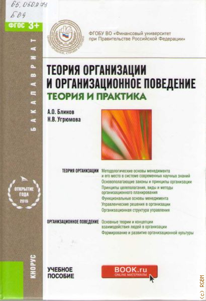 Блинов А. О., Теория организации и организационное поведение (теория и практика). учебное пособие для обучающихся в высших учебных заведениях по направлению подготовки 38.03.02 "Менеджмент" (квалификация (степень) "бакалавр") — 2016 (Бакалавриат) (ФГОС 3+)