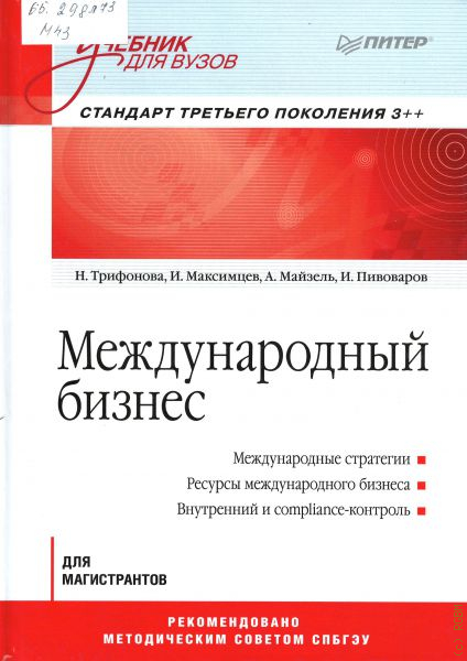 Трифонова Н. В., Международный бизнес. учебник для вузов. для студентов, обучающихся по направлению подготовки 38.04.02 "Менеджмент" (квалификация магистр). для магистрантов — 2018 (Учебник для вузов) (Стандарт третьего поколения)