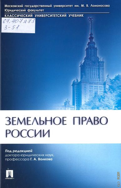 Волков Г. А., Земельное право России. учебник для студентов, обучающихся по направлению подготовки 40.03.01 "Юриспруденция" (квалификация "Бакалавр"), магистрантов, обучающихся по направлению подготовки 40.04.01 "Юриспруденция" (квалификация "Магистр") и аспирантов, обучающихся по направлению подготовки 40.06.01 "Юриспруденция" (квалификация "Исследователь. Преподаватель-исследователь" — 2025 (Классический университетский учебник)