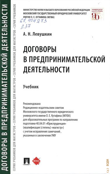 Левушкин А. Н., Договоры в предпринимательской деятельности. учебник. для образовательных программ по направлению подготовки 40.04.01 "Юриспруденция" (квалификация (степень) "магистр") с учетом исправления замечаний, указанных в заключении УМУ — 2025 (Серия учебников для магистров)