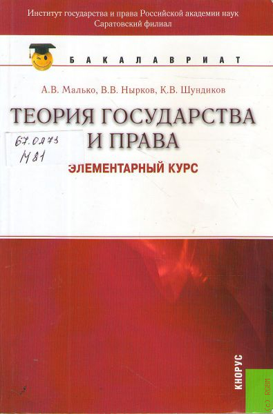 ![Малько А. В., Теория государства и права. элементарный курс. [учебное пособие] — 2013 [т.е. 2012] (Бакалавриат)](/searchcat/covers/RGUB-BIBL-0000872527.jpg) |