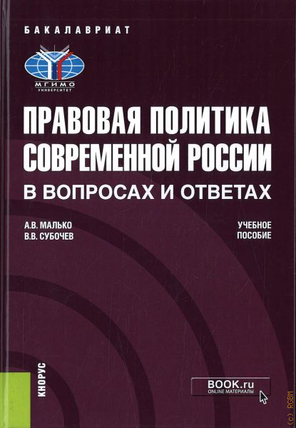 Малько А. В., Правовая политика современной России в вопросах и ответах. учебное пособие для направления бакалавриата и магистратуры "Политология" — 2021 (Бакалавриат)