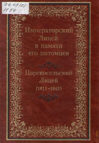 Царскосельский Лицей (1811-1843). [письма, воспоминания, отрывки из дневников]. Императорский Лицей в памяти его питомцев Кн. 1 — 2011