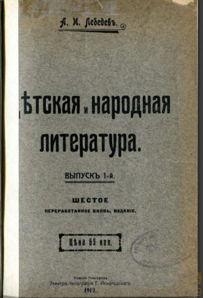 Лебедев А.И., Детская и народная литература. Опыт руководства для систематического чтения. Заметки для родителей и нар. учителей с указанием лучших книг — 1912-1915