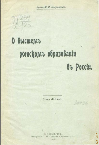 Брошюра дает анализ развития системы высшего женского образования в России.