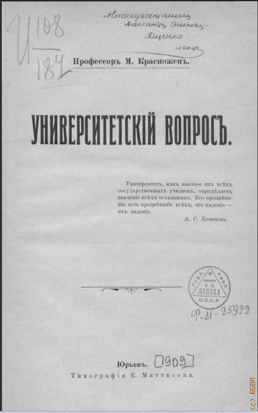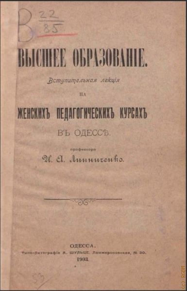 Линниченко И.А., Высшее образование. вступительная лекция на жен. пед. курсах в Одессе — 1903