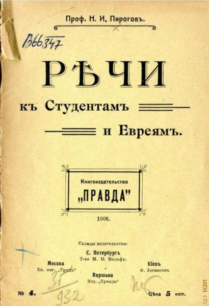 Пирогов Н.И., Речи к студентам и евреям — 1906