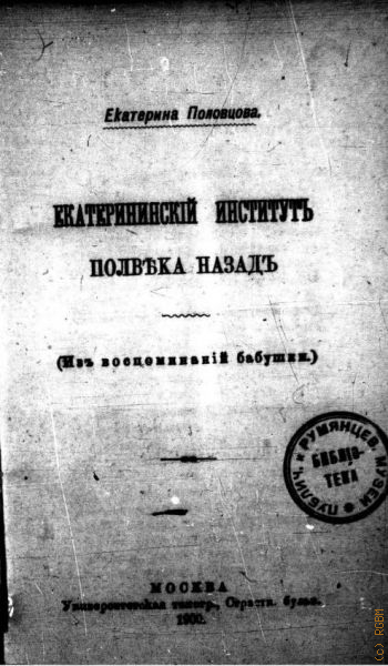 Половцова Е., Екатерининский институт полвека назад. (из воспоминаний бабушки) — 1900