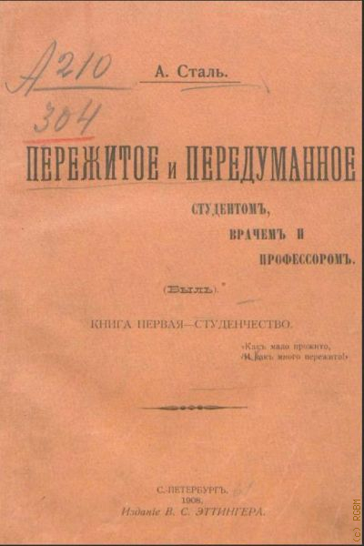 Сталь А., Пережитое и передуманное студентом, врачом и профессором. Быль — 1908