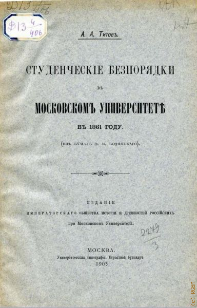 Титов А.А., Студенческие беспорядки в Московском университете в 1861 году. — 1905