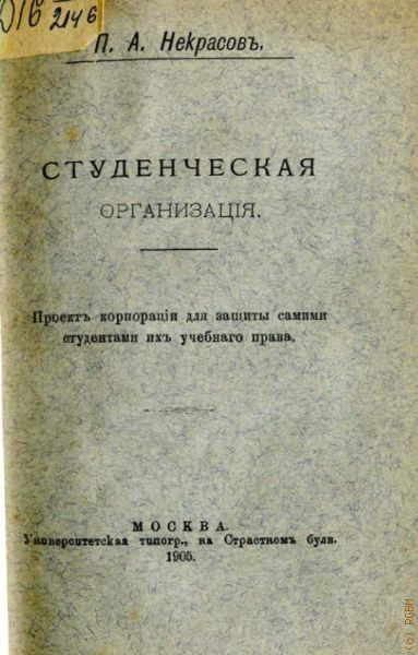 Некрасов П.А., Студенческая организация. Проект корпорации для защиты самими студентами их учебных прав — 1905