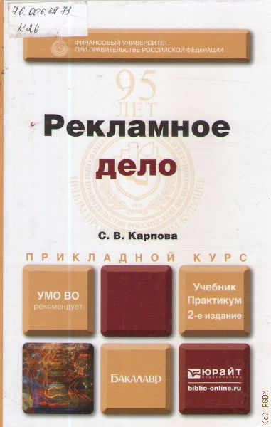 Карпова С. В., Рекламное дело. Учебник и практикум для прикладного бакалавриата — 2015 (Бакалавр. Прикладной курс) (УМО ВО рекомендует)