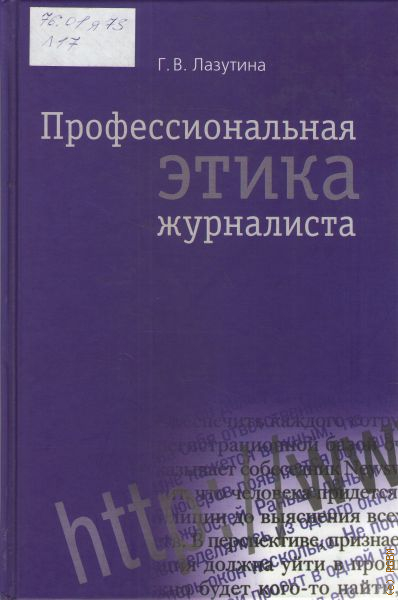 Лазутина Г. В., Профессиональная этика журналиста. Учебник для студентов высших учебных заведений, обучающихся по направлению 030600 "Журналистика" — 2011