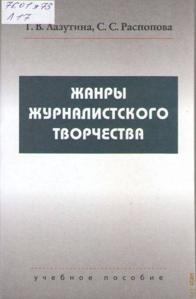 Лазутина Г. В., Жанры журналистского творчества. Учебное пособие для студентов высших учебных заведений, обучающихся по направлению 030600 "Журналистика" и специальности 030601 "Журналистика" — 2012
