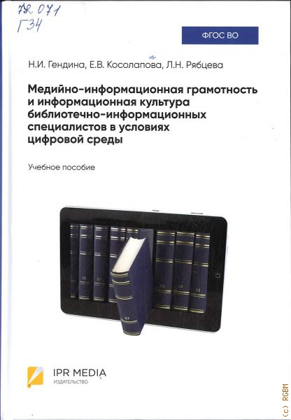 Гендина Н. И., Медийно-информационная грамотность и информационная культура библиотечно-информационных специалистов в условиях цифровой среды. учебное пособие. для студентов укрупненной группы направлений подготовки и специальностей "Культуроведение и социокультурные проекты" — 2024 (ФГОС ВО)