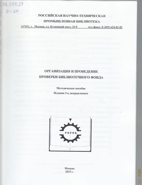 Организация и проведение проверки библиотечного фонда. методическое пособие — 2015