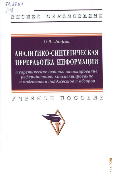 Лаврик О.Л., Аналитико-синтетическая переработка информации. теоретические основы, аннотирование, реферирование, конспектирование и подготовка дайджестов и обзоров. учебное пособие. для студентов вузов культуры, обучающихся по направлению подготовки "Библиотечно-информационная деятельность" — 2025 (Высшее образование)