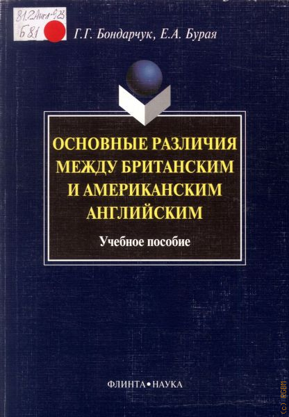 Бондарчук Г. Г., Основные различия между британским и американским английским. Учеб. пособие для студентов, обучающихся по специальностям направления "Лингвистика и межкультурная коммуникация" — 2008