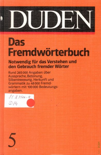 DUDEN. das Fremdworterbuch. rund 265000 Angaben uber Aussprache, Betonung, Silbentrennung, Herkunft u. Grammatik zu 48000 Fremdwortern mit 100000 Bedeutungsangaben — 1982