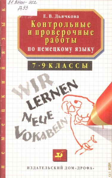 Дьячкова Е. В., Контрольные и проверочные работы по немецкому языку. классы 7-9. методическое пособие — 1999