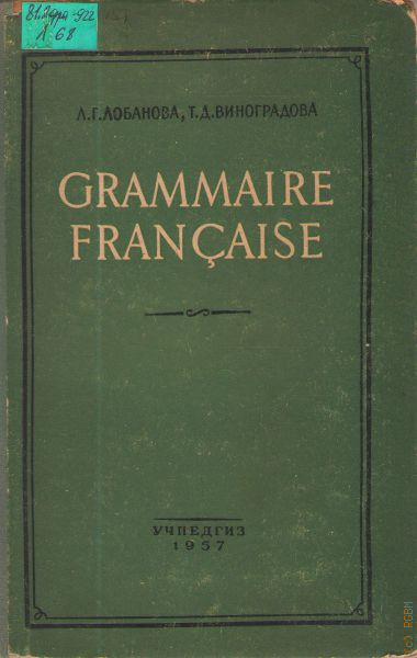 Лобанова Л.Г., Грамматика французского языка. Для старших классов школ с преподаванием ряда предметов на иностранном языке — 1957