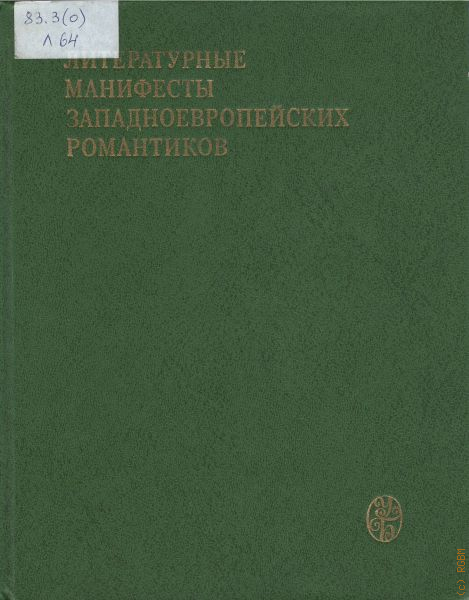 Литературные манифесты западноевропейских романтиков — 1980 (Универ.библиотека/Редкол.:Л.Г.Андреев(пред.) и др.)