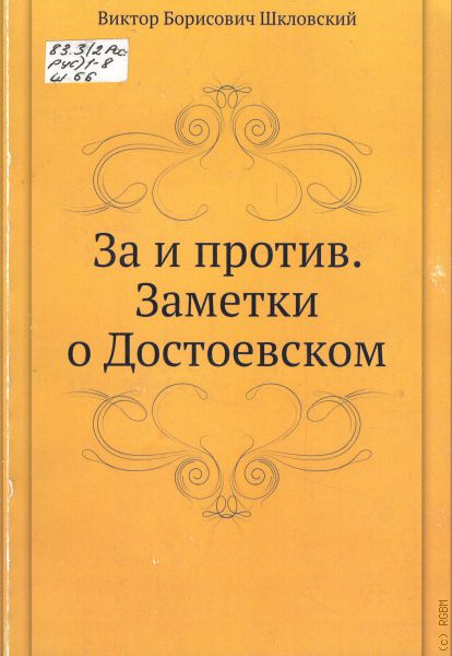Книга "За и против.Заметки о Достоевском" - первая работа В.Шкловского об этом писателе.Она создавалась в то время, когда в советском литературоведении возродился усиленный интерес к Достоевскому, происходила переоценка некоторых недавних, резко критических концепций, раскрывалось историческое значение литературного труда Достоевского, выяснялись действительные противоречия его мировоззрения и творчества.