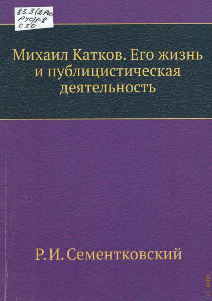 Сементковский Р.И., Михаил Катков. его жизнь и публицистическая деятельность — 2011