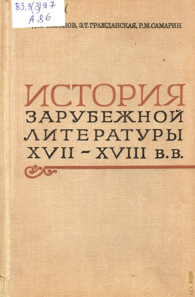 Артамонов С.Д., История зарубежной литературы XVII-XVIII вв.. [учебник для пед. институтов по специальности — 2101 "Русский язык и литература"] — 1973