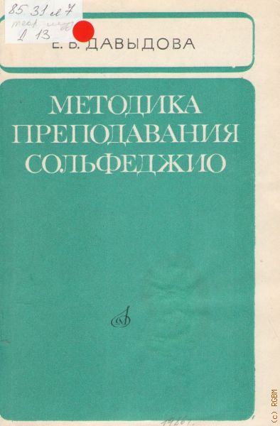 Давыдова Е. В., Методика преподавания сольфеджио. учебное пособие для студентов музыкальных вузов и учащихся музыкальных училищ — 1986