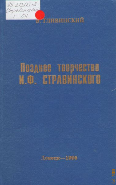 Гливинский В.В., Позднее творчество И.Ф. Стравинского (Искусствоведение): Автореферат дис. на соиск. учен. степ. д-ра искусствоведения. наук : 17.00.02 — 1996