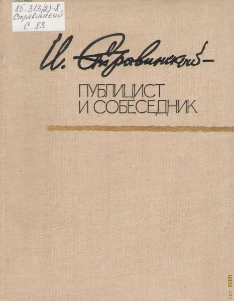 ![И.Стравинский-публицист и собеседник: [сборник. составитель, редактор, автор комментариев и заключительная статья В.П. Варунц] — 1988](/searchcat/covers/RGUB-BIBL-0000769607.jpg) |