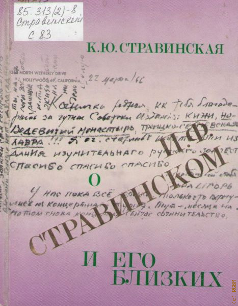 Содержание: Несколько штрихов к портрету И. Ф. Стравинского / В. Смирнов. Стравинский в Ницце 1925-1926 гг.; Приезд И. Ф. Стравинского в СССР 9-10 1962 г.; Переписка со Стравинским 1962-1970 гг.; Последние месяцы жизни И. Ф. Стравинского 1970-1971 гг