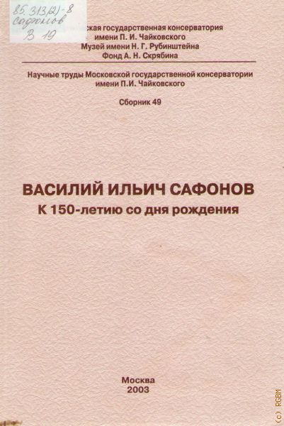 Василий Ильич Сафонов. 1852-1918: к 150-летию со дня рождения. Материалы научной конференции. редактор Ю. В. Москва — 2003 (Научные труды Московской государственной консерватории имени П. И. Чайковского. Сб.49)