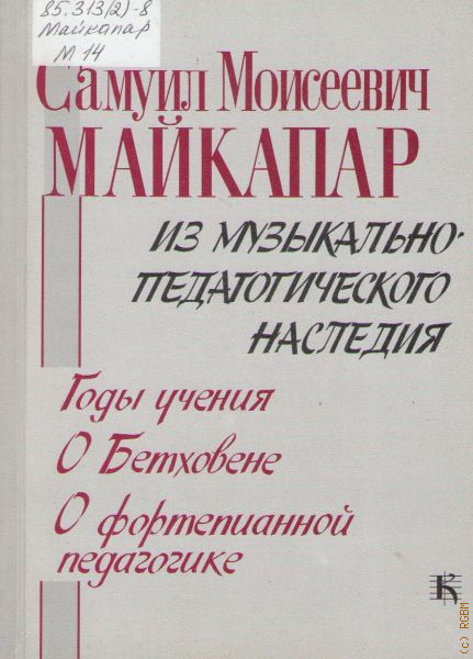 Майкапар С. М., Годы учения: О Бетховене. О фортепианной педагогике. Из музыкально-педагогического наследия 1 — 2003