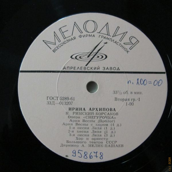 Римский-Корсаков Н., [Сцены и арии из опер]Ирина Архипова, В. Нечипайло, Г. Шульпин, Хор и оркестр Большого театра СССР, дир. А. Мелик-Пашаев — [196-?]