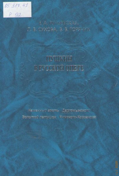 Ручьевская Е. А., Пушкин в русской опере: Каменный гость Даргомыжского, Золотой петушок Римского - Корсакова. Авт.: Е. А. Ручьевская, Л. В. Сухова, В. В. Горячих. [ред. - сост. Н. И. Кузьмина, В. В. Горячих] — 2012