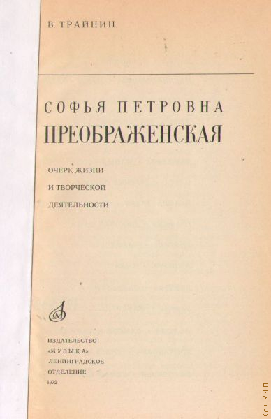 Трайнин В. Я., Софья Петровна Преображенская: Очерк жизни и творческой деятельности — 1972 (Мастера оперной сцены)