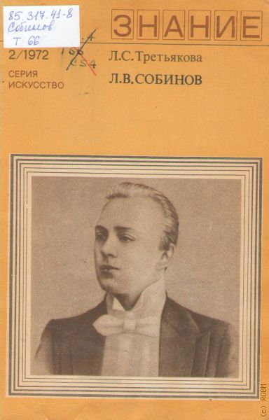 Третьякова Л. С., Л. В. Собинов [к 100-летию со дня рождения] — 1972 (Новое в жизни, науке, технике. Серия "Искусство" 1972-2)