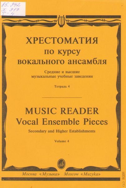 Хрестоматия по курсу вокального ансамбля: Средние и высшие музыцкальные учебные заведения. Тетрадь 4: для пения в сопровождении фортепиано [в 4-х тетрадях]. сост. А. М. Скульский — 2002