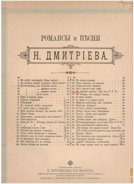 ![Дмитриев Н. Д., Сосна: трио : [для сопрано, тенора и баса с сопровождением фортепиано] слова М. Лермонтова — [1853?]](/searchcat/covers/RGUB-BIBL-0000871761-note.jpg) |