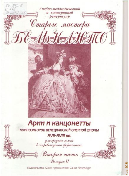 Арии и канцонетты композиторов венецианской оперной школы 17-18 вв. Старые мастера бельканто: для среднего голоса в сопровождении фортепиано Ч. 2, Вып. 2 — 2004 (Учебно - педагогический репертуар)