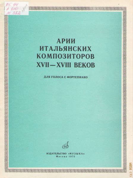 Арии итальянских композиторов 17-18 веков: для голоса с фортепиано. Составитель В. Н. Орленин. Перевод А. Машистова — 1975