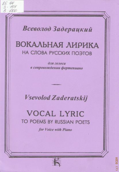 Задерацкий В., Вокальная лирика на слова русских поэтов: для голоса в сопровождении фортепиано — 2003