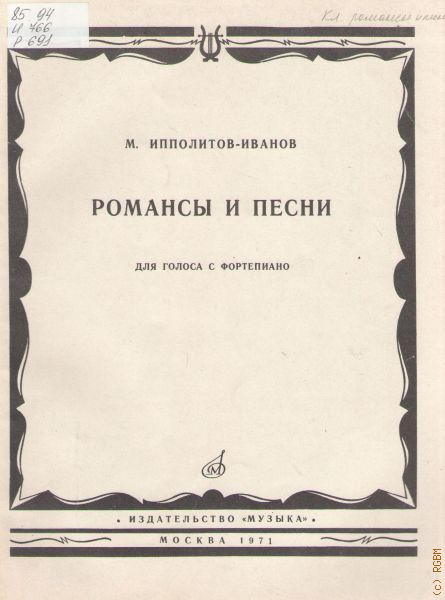 Ипполитов-Иванов М., Романсы и песни: для голоса с фортепиано — 1971